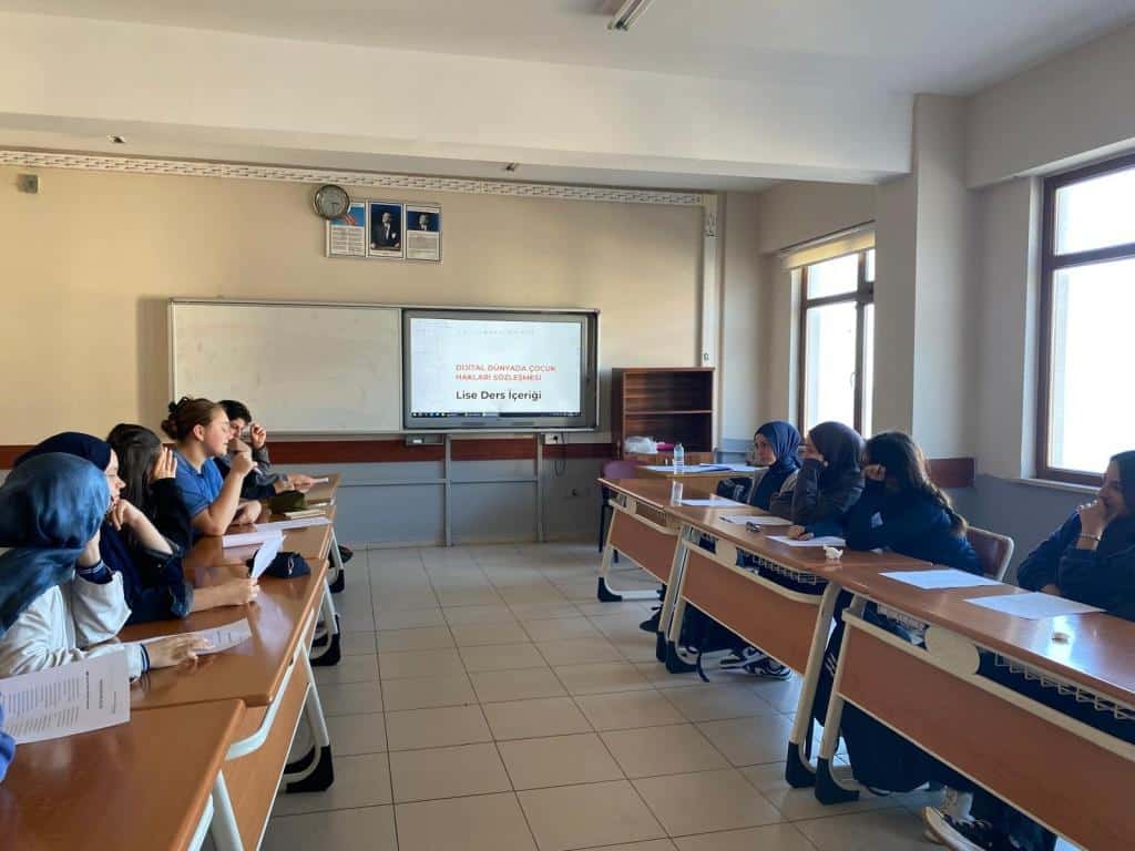 Okulumuzda öğrencilerimize “Dijital Dünyada Çocuk Hakları Sözleşmesi” hakkında bilgilendirme yapıldı. Öğrencilerimiz, konuyu daha iyi kavrayabilmeleri için sınıflarda gruplar oluşturarak sözleşme üzerine münazara etkinlikleri gerçekleştirdiler.