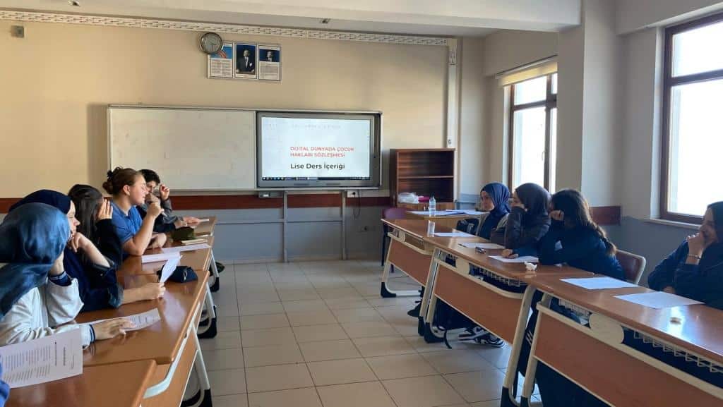 Etkinlik kapsamında lise öğrencilerimiz, dijital dünyada çocukların sahip olduğu haklar üzerine münazara gerçekleştirdi. Öğrencilerimiz bu sayede hem konuya dair farkındalık kazandılar hem de düşüncelerini ifade etme ve savunma becerilerini geliştirdiler.
